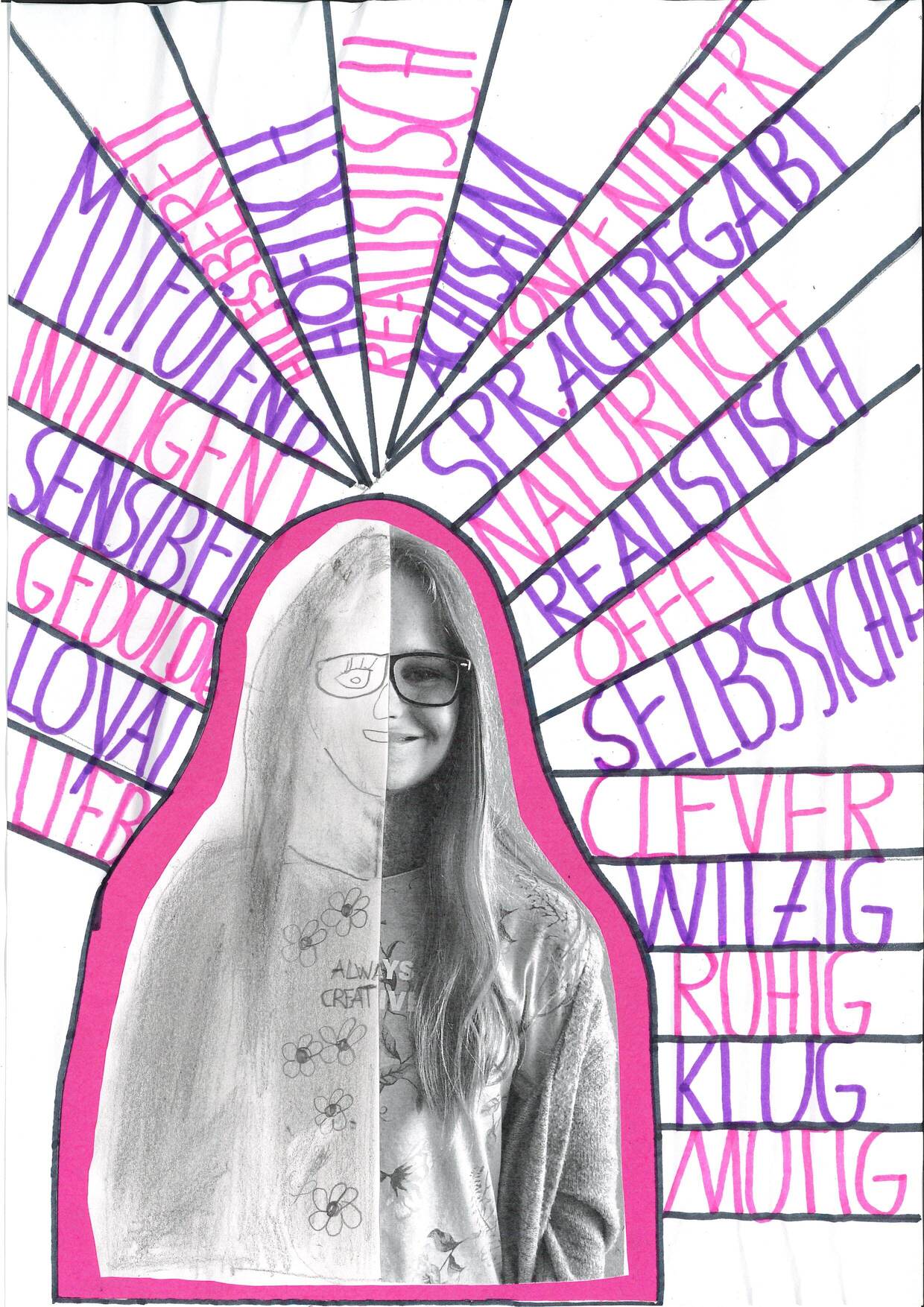 Als fächerübergreifendes Projekt von BBO und Kunst und Gestaltung hatten die Schüler:innen der 4b die Möglichkeit, sich mit ihren eigenen Stärken auseinanderzusetzen und gestalteten ihr ganz persönliches Stärkenprofil! Wir sind stolz auf unsere kreativen Ergebnisse!