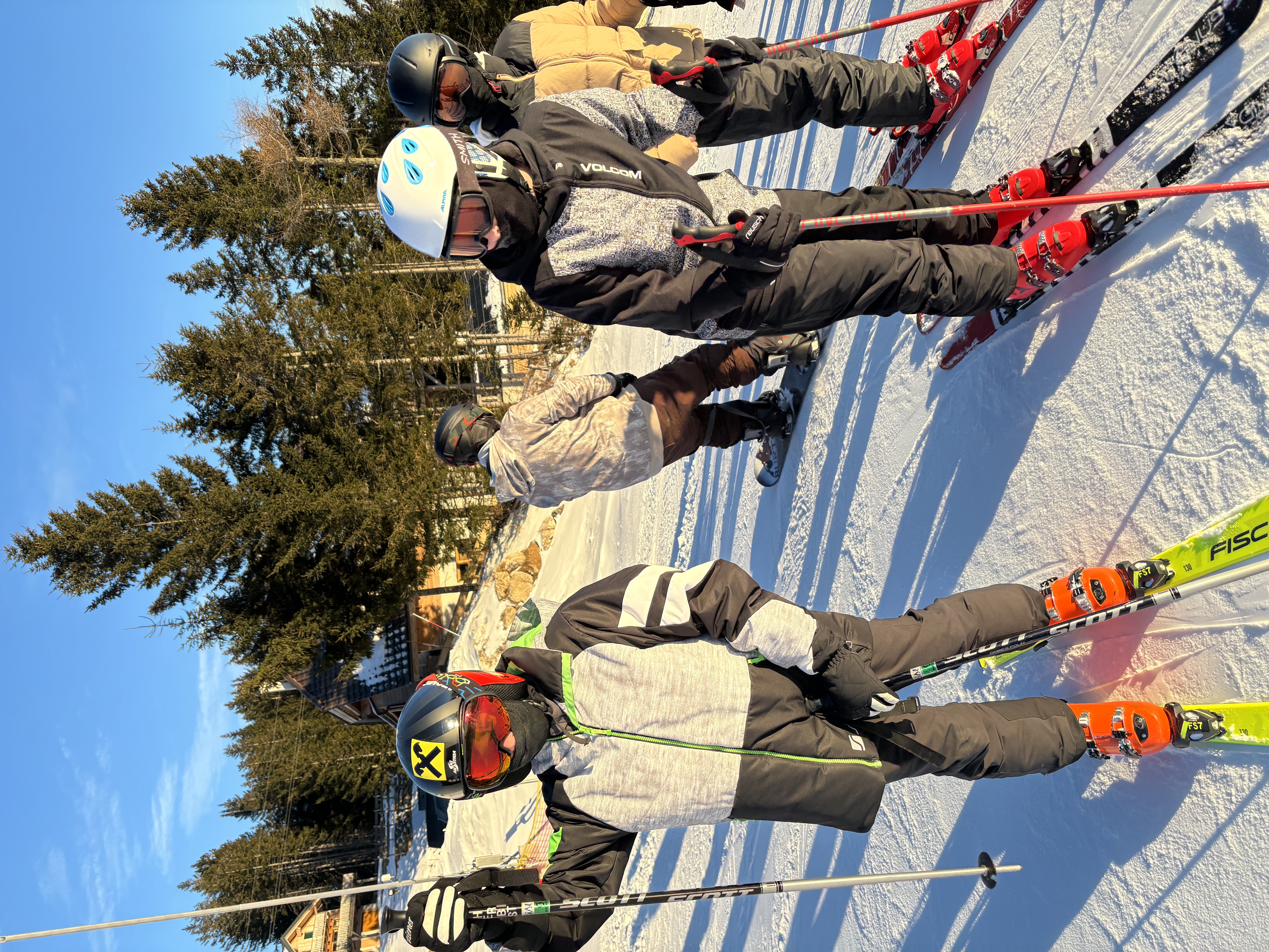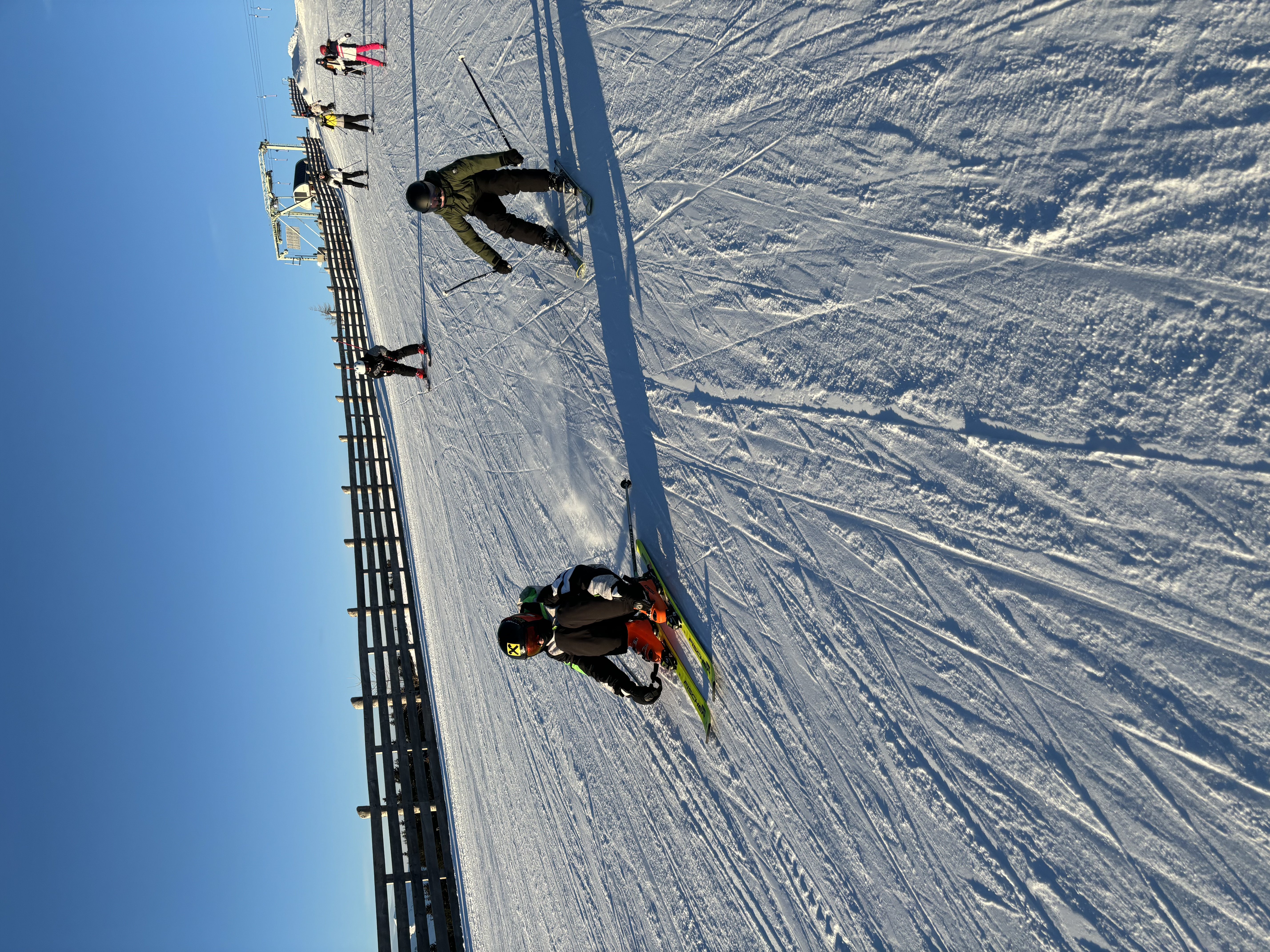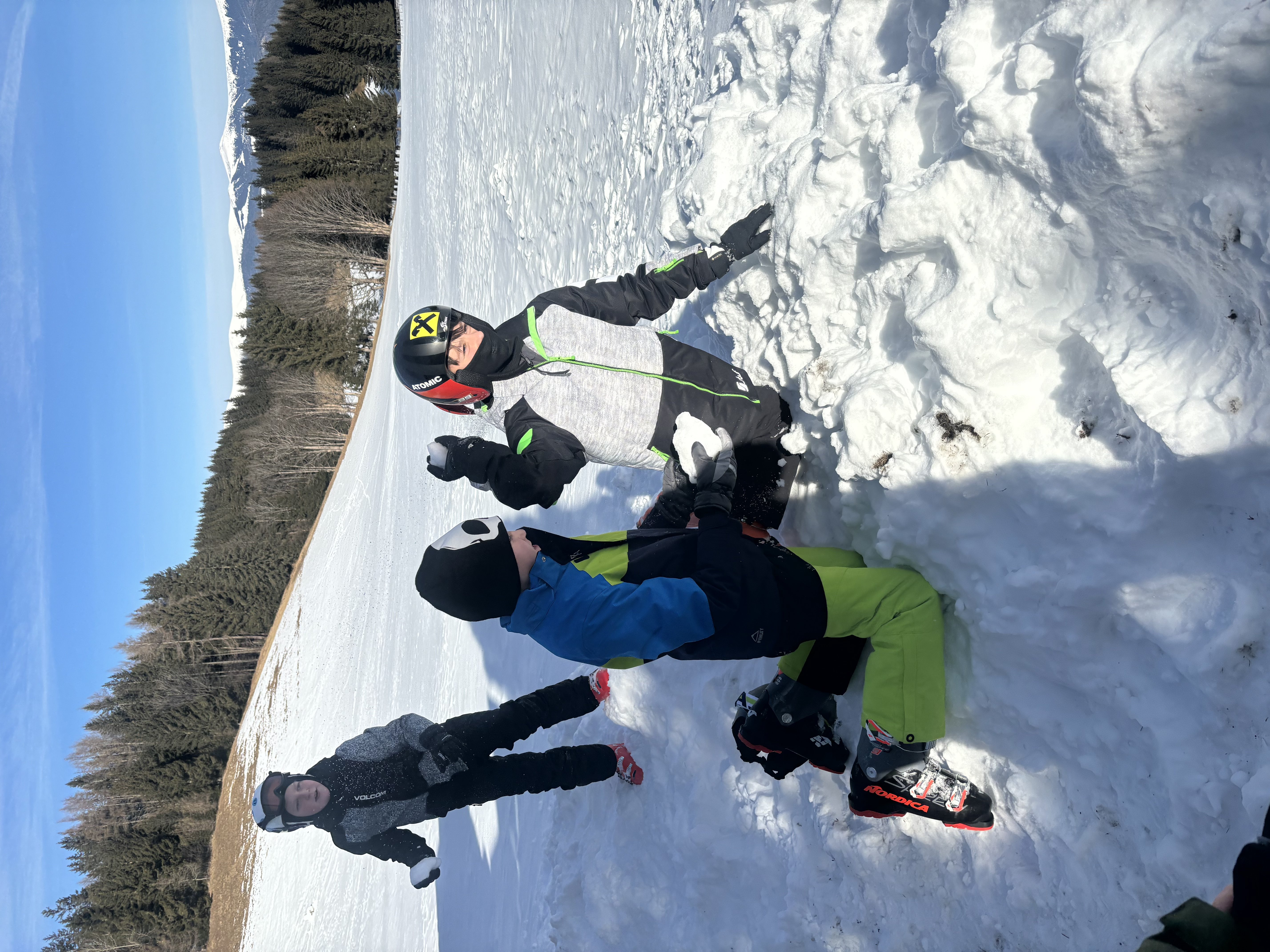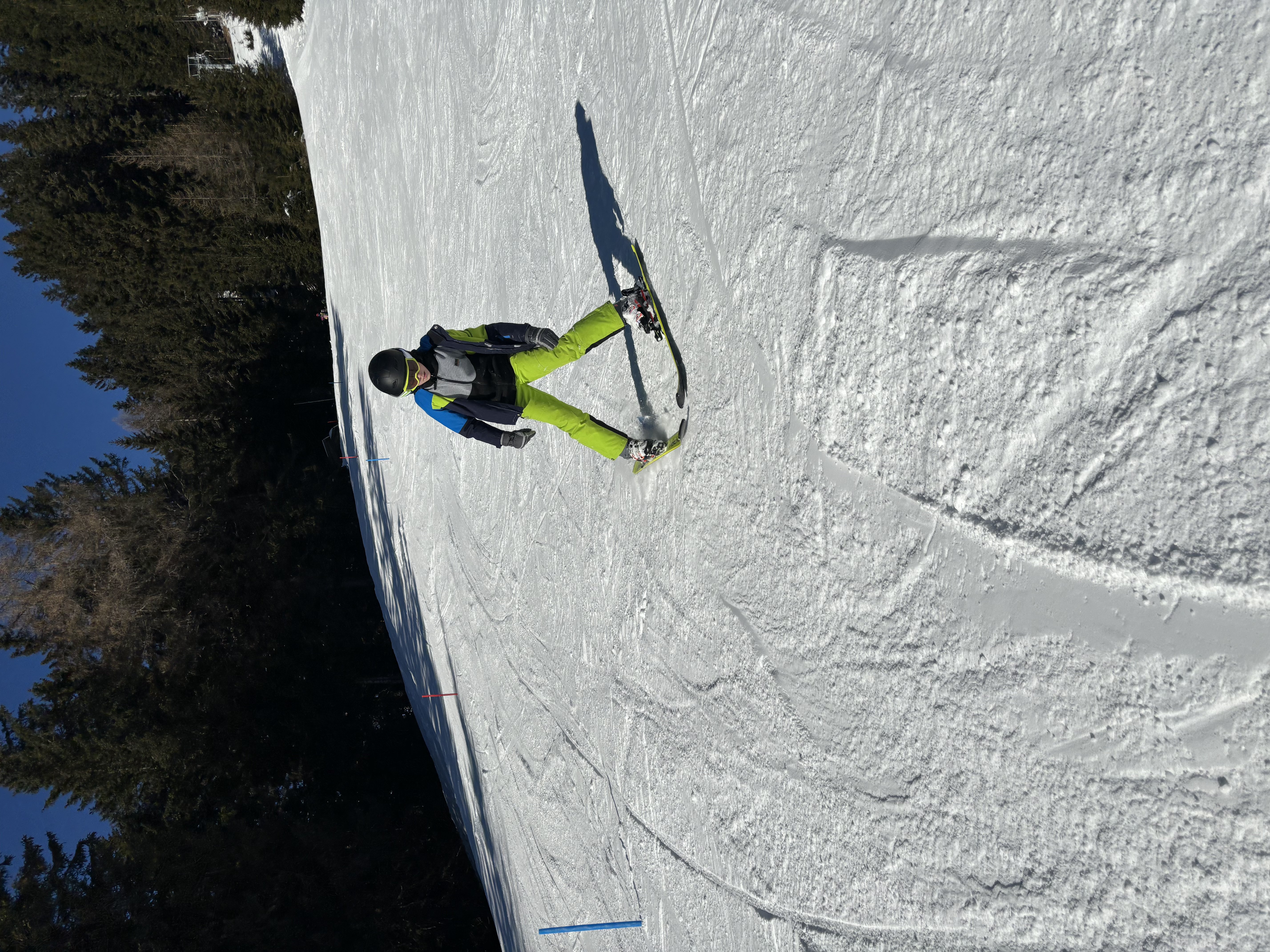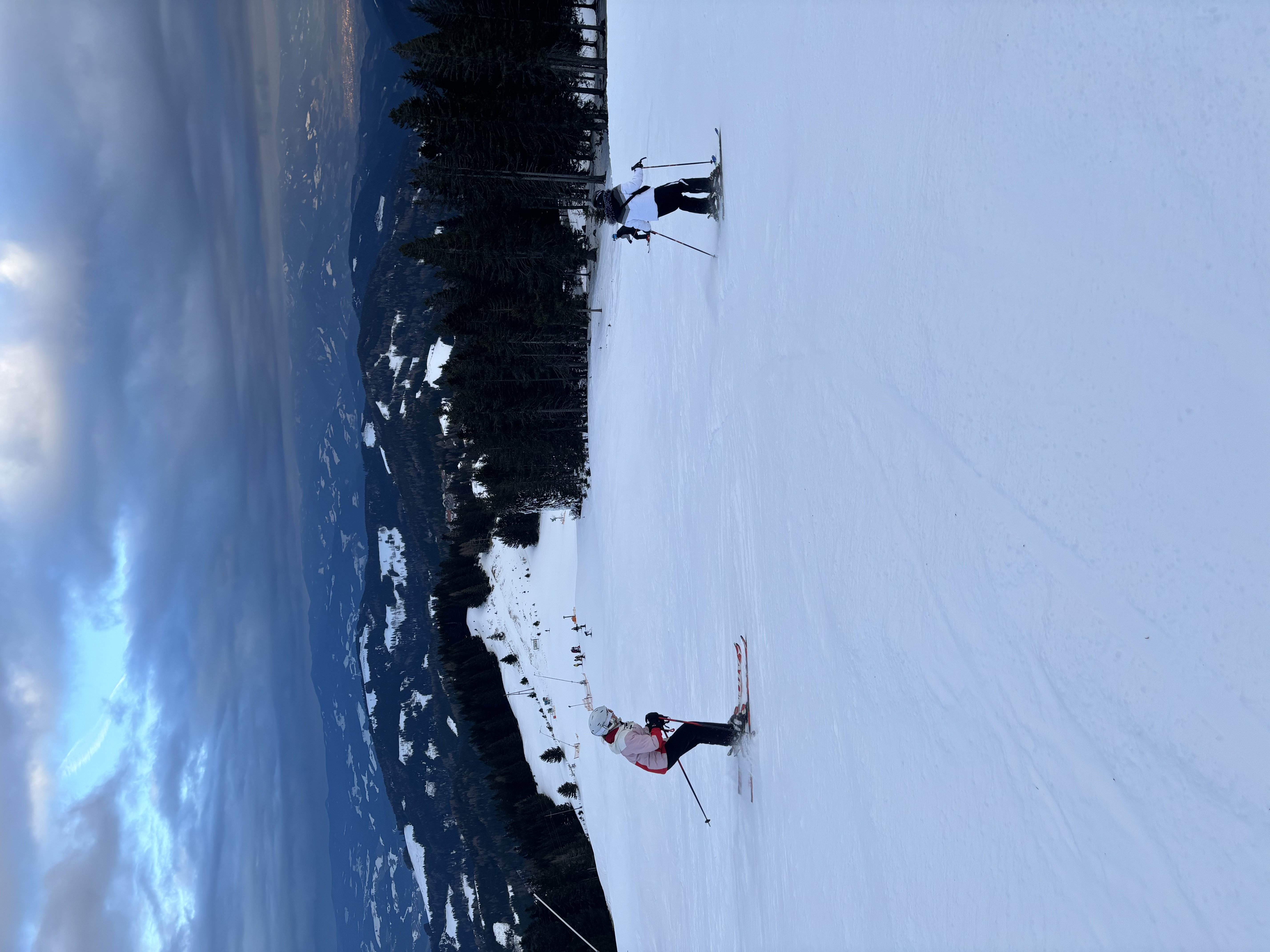In den nächsten Tagen wechselten wir Lehrpersonen die Gruppen durch, sodass jeder einmal mit den Kanonen, den Pistenflitzern und der Gruppe Überschall fahren durfte. Auch das Wetter wechselte täglich. Von Sonnenschein und wolkenlosen Himmel bis hin zu starkem Schneefall war alles dabei. Auch die Pisten waren dadurch sehr unterschiedlich, sodass die Kinder lernten, wie man sowohl auf eisigen Pisten als auch im Tiefschnee sicher fährt. Da das Skigebiet übersichtlich war und nicht viele andere Skifahrerinnen und Skifahrer unterwegs waren, konnten wir ungehindert über jede Piste flitzen.