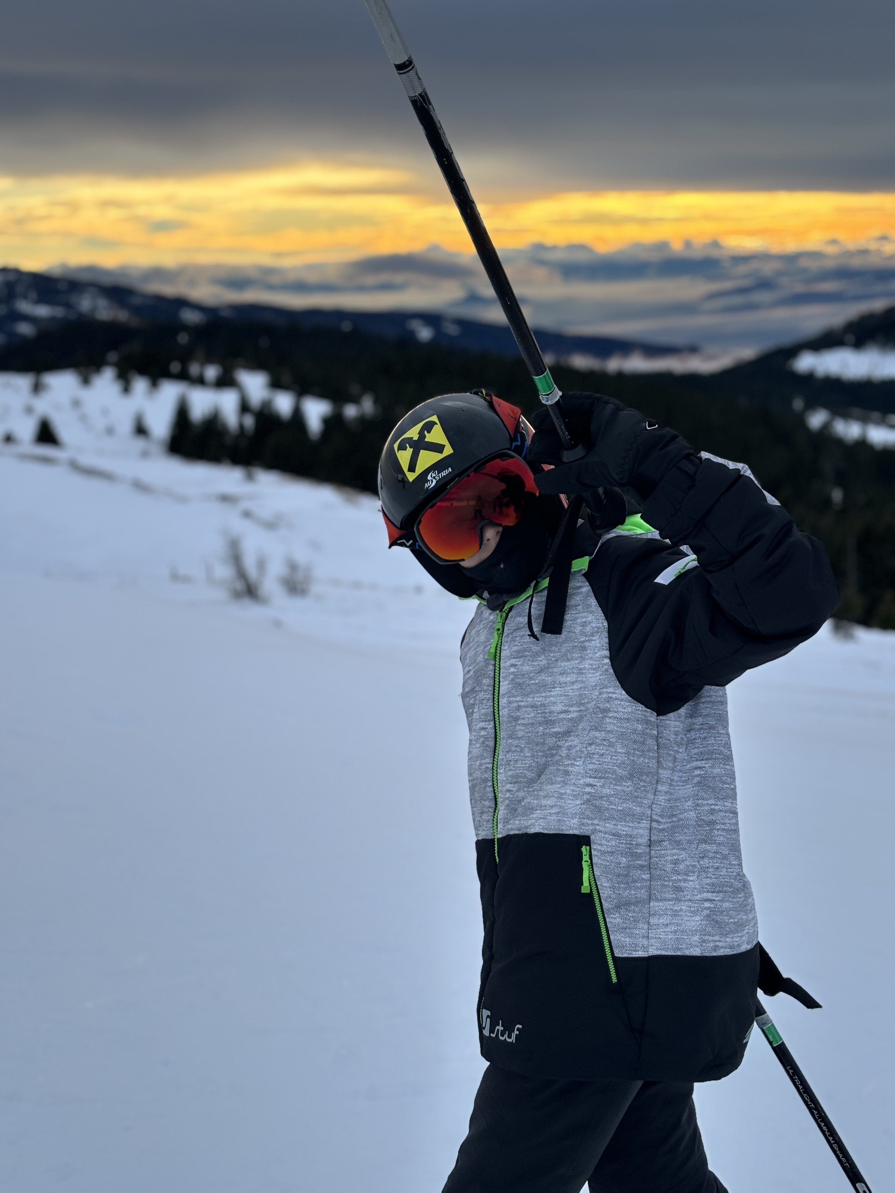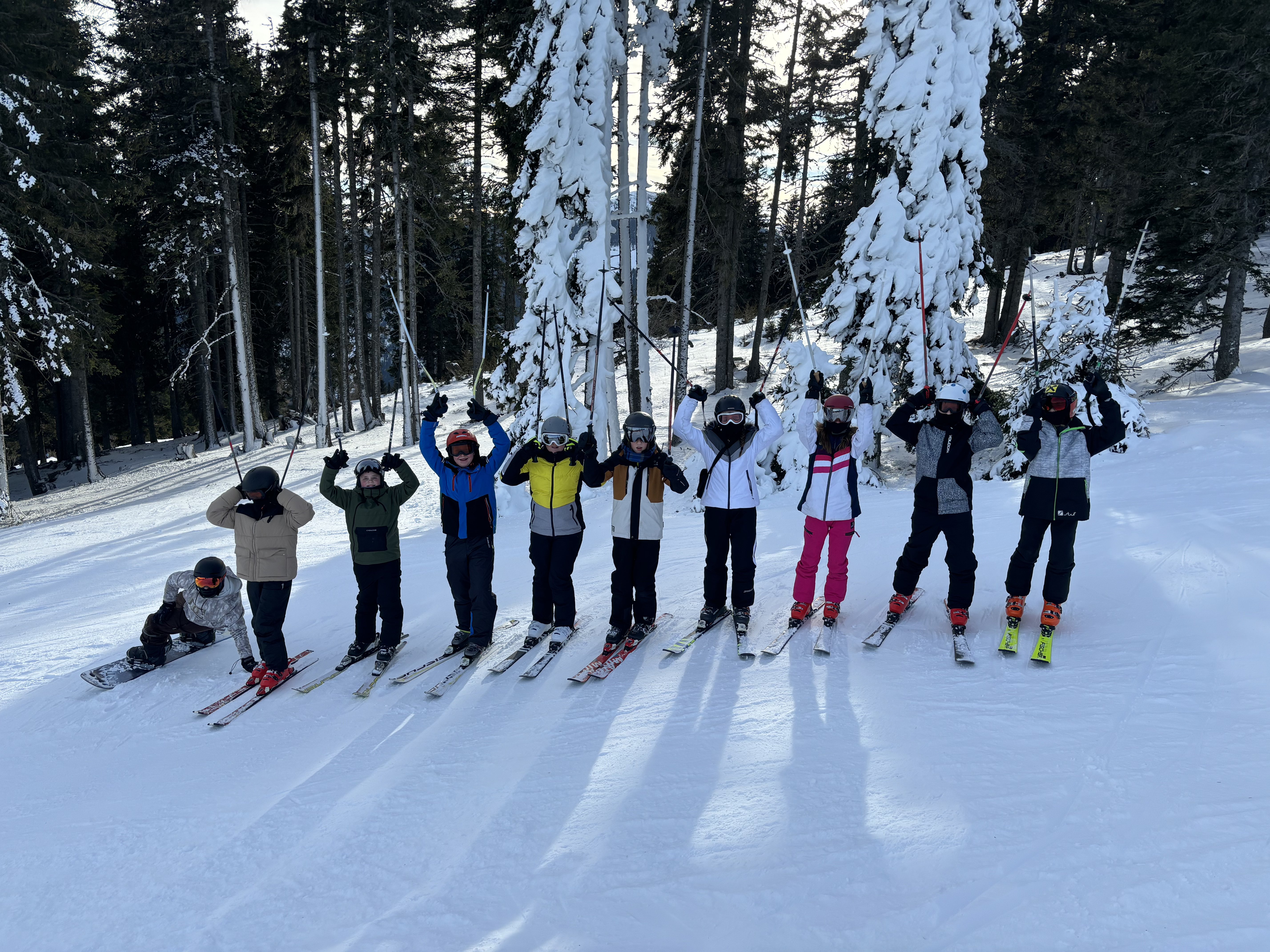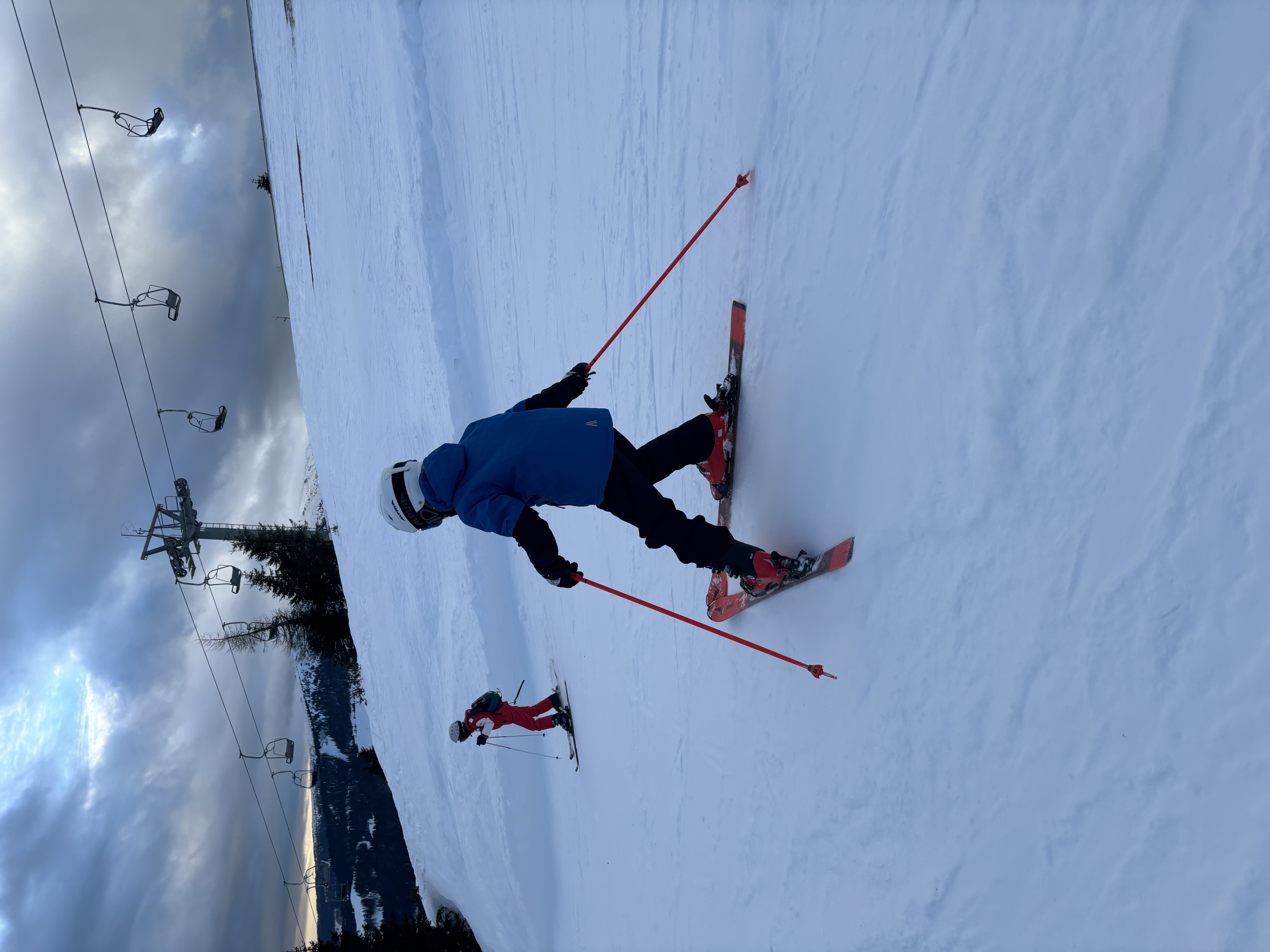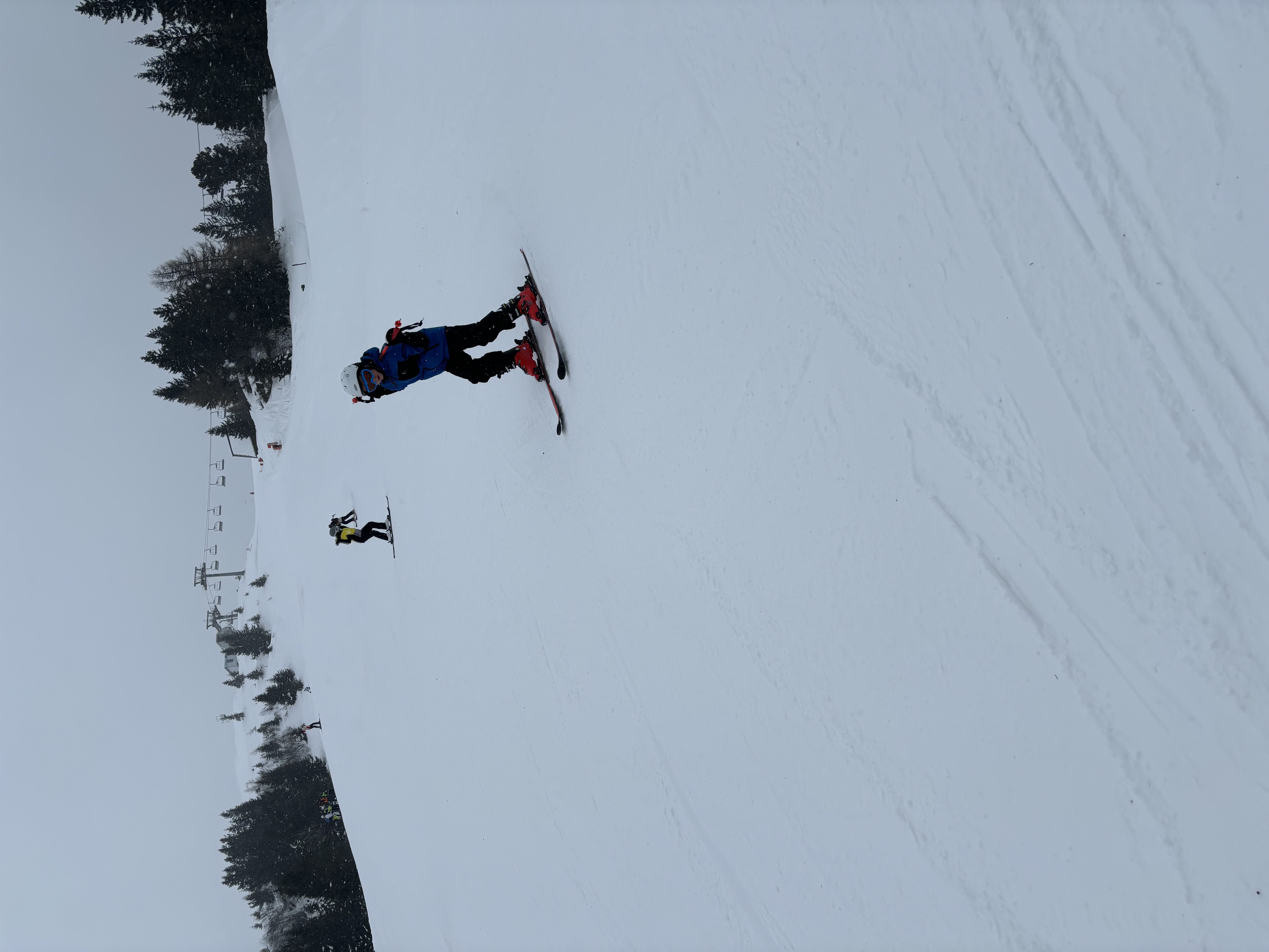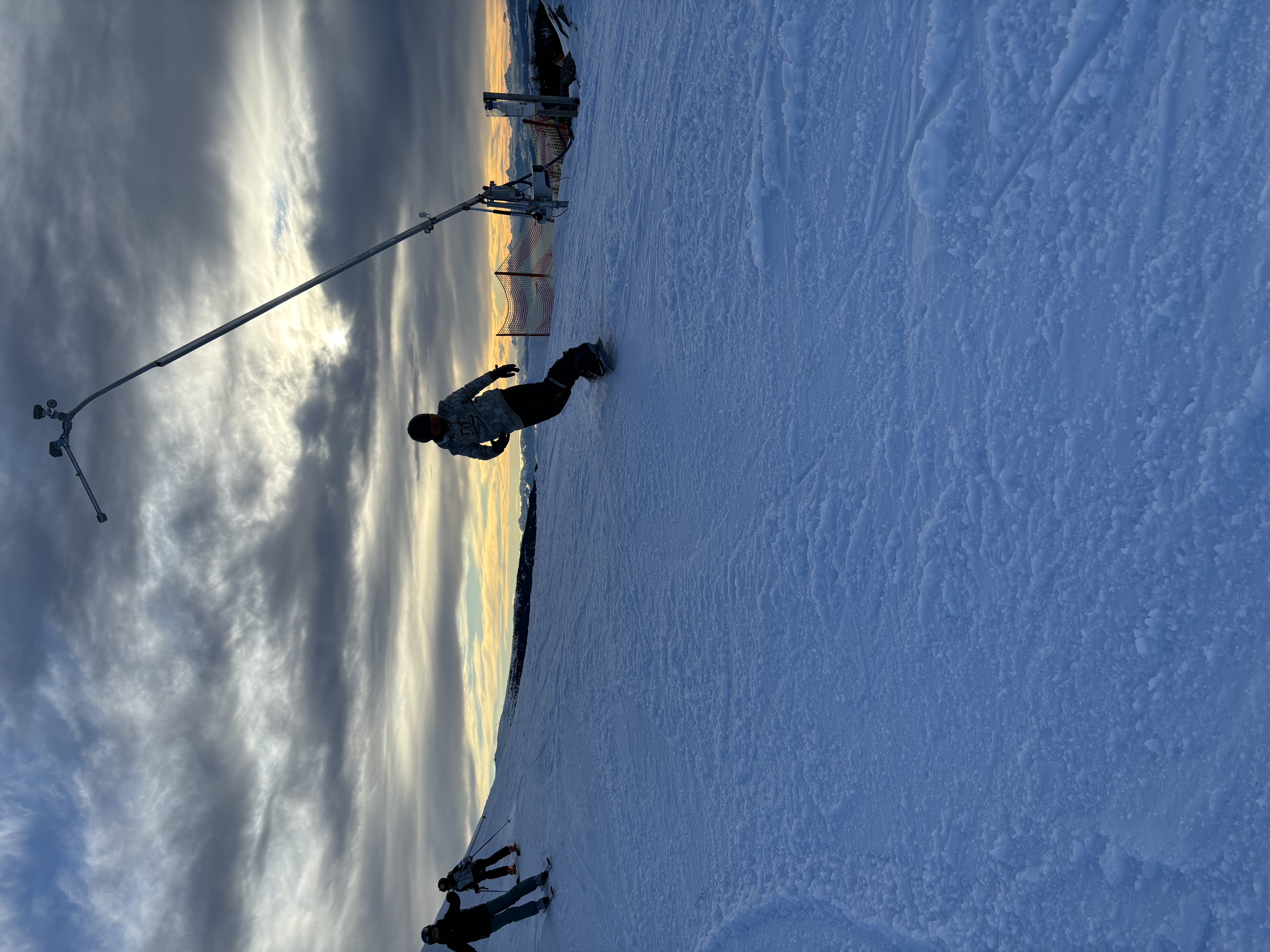In den nächsten Tagen wechselten wir Lehrpersonen die Gruppen durch, sodass jeder einmal mit den Kanonen, den Pistenflitzern und der Gruppe Überschall fahren durfte. Auch das Wetter wechselte täglich. Von Sonnenschein und wolkenlosen Himmel bis hin zu starkem Schneefall war alles dabei. Auch die Pisten waren dadurch sehr unterschiedlich, sodass die Kinder lernten, wie man sowohl auf eisigen Pisten als auch im Tiefschnee sicher fährt. Da das Skigebiet übersichtlich war und nicht viele andere Skifahrerinnen und Skifahrer unterwegs waren, konnten wir ungehindert über jede Piste flitzen.