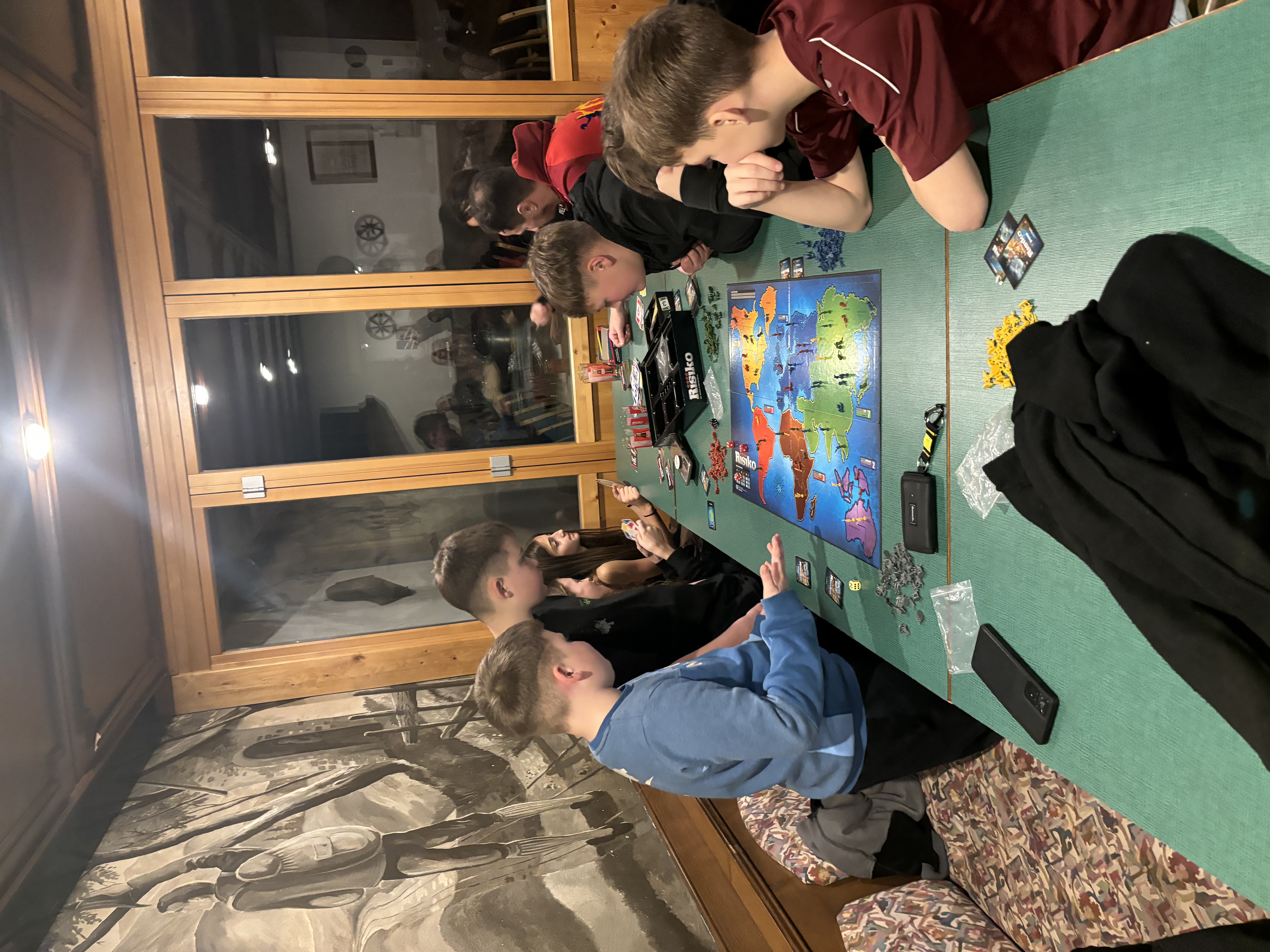 Das Abendprogramm setzte sich aus unterschiedlichen Spielen wie beispielsweise Werwolf und Wer bin ich? zusammen. Ab und dann gelang es den Schülerinnen und Schülern bei Monopoly uns Lehrpersonen das Geld aus der Tasche zu ziehen und bei Risiko den einen oder anderen Kontinent von Herrn Nebel einzunehmen. Außerdem veranstalteten wir die Talentshow Klippitztörl got Talent. In Kleingruppen durften sich die Kinder etwas aussuchen, was sie uns Lehrpersonen als Jury präsentieren wollen. Von Comedy-Einlagen, über akrobatische Übungen bis hin zu einer sehr überzeugenden Gesangseinlage von dem Lied Böll Böll Kernöl war so ziemlich alles dabei. Den Preis für die beste Showeinlage erhielt die Gruppe von Lion Liebmann, Lukas Lind und Paul Schriebl.
