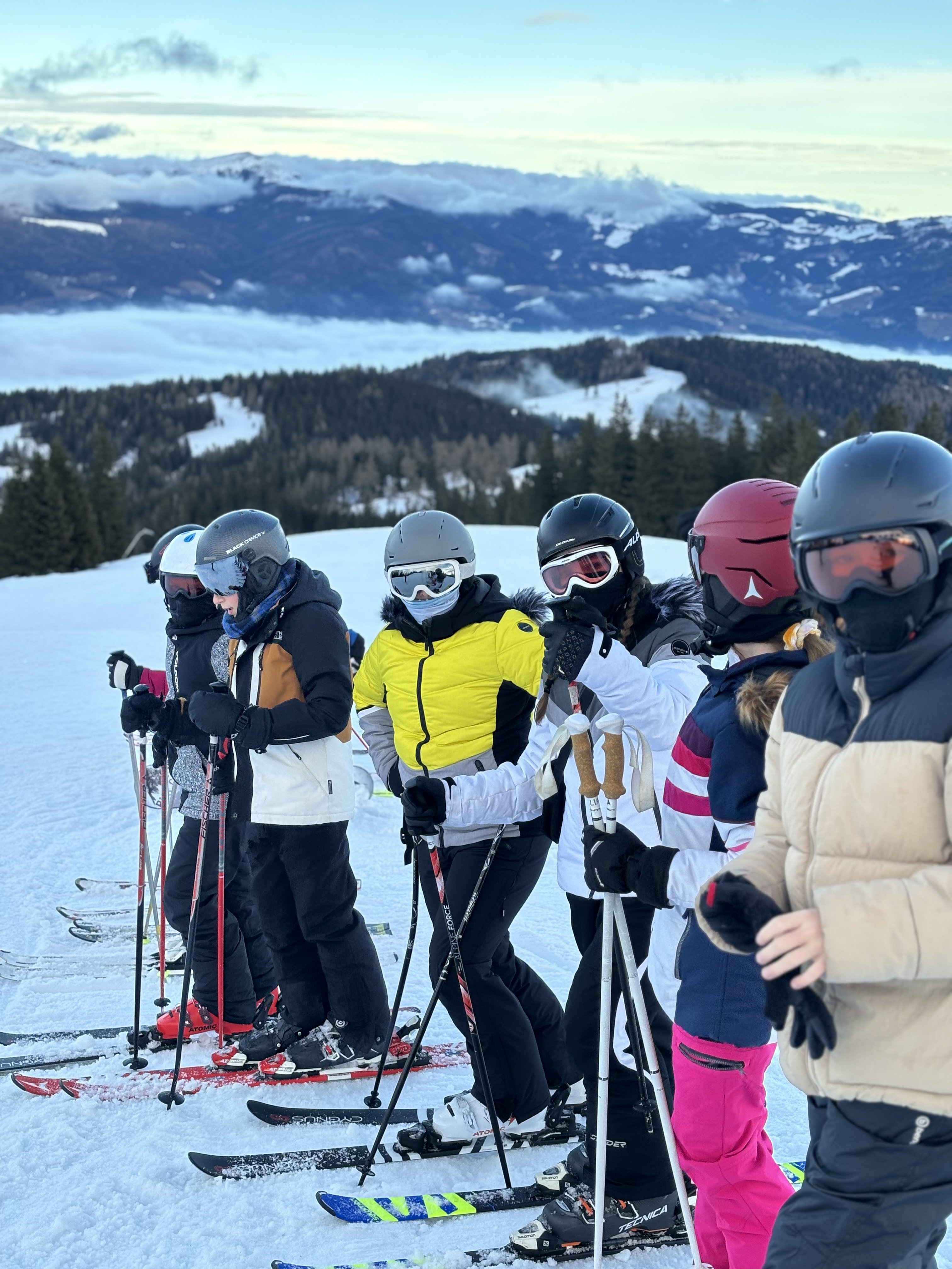 Vom 15.1.-19.1. fand unser Skikurs der zweiten Klassen am Klippitztörl statt. Voller Vorfreude begann die Reise am Montag früh um 07:45. Nach einer kurzen Busfahrt sind wir in unserer Unterkunft, dem Gasthof Buchbauer angekommen, wo wir unser Gepäck abgeladen und uns sofort auf den Weg zur Piste gemacht haben. Auf der Märchenwiese haben wir uns zusammen aufgewärmt und die Gruppen eingeteilt. Während die Fortgeschrittenen mit Herrn Eccher und Frau Dokter das Skigebiet erkundeten, bestritten die 10 Anfängerinnen und Anfänger mit Hilfe von Herrn Nebel die ersten Meter auf Skiern.